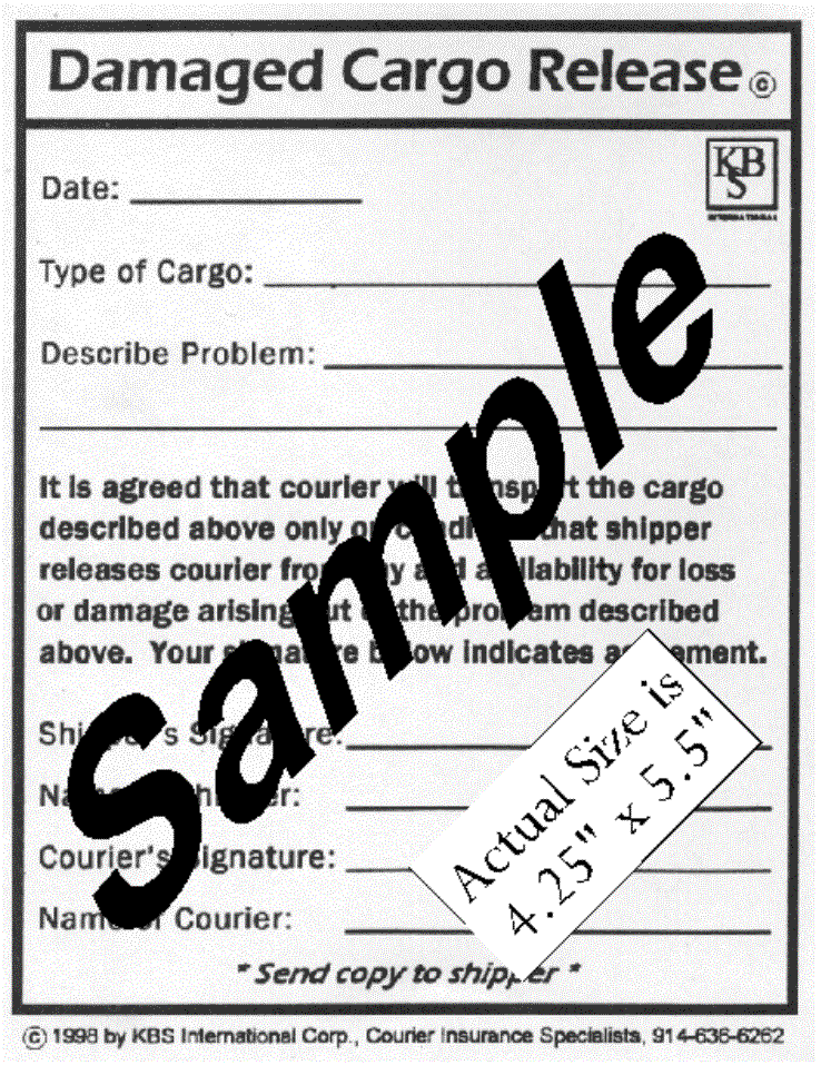 Cargo Waiver Pads (save money and improve service! Click here for more information.) |